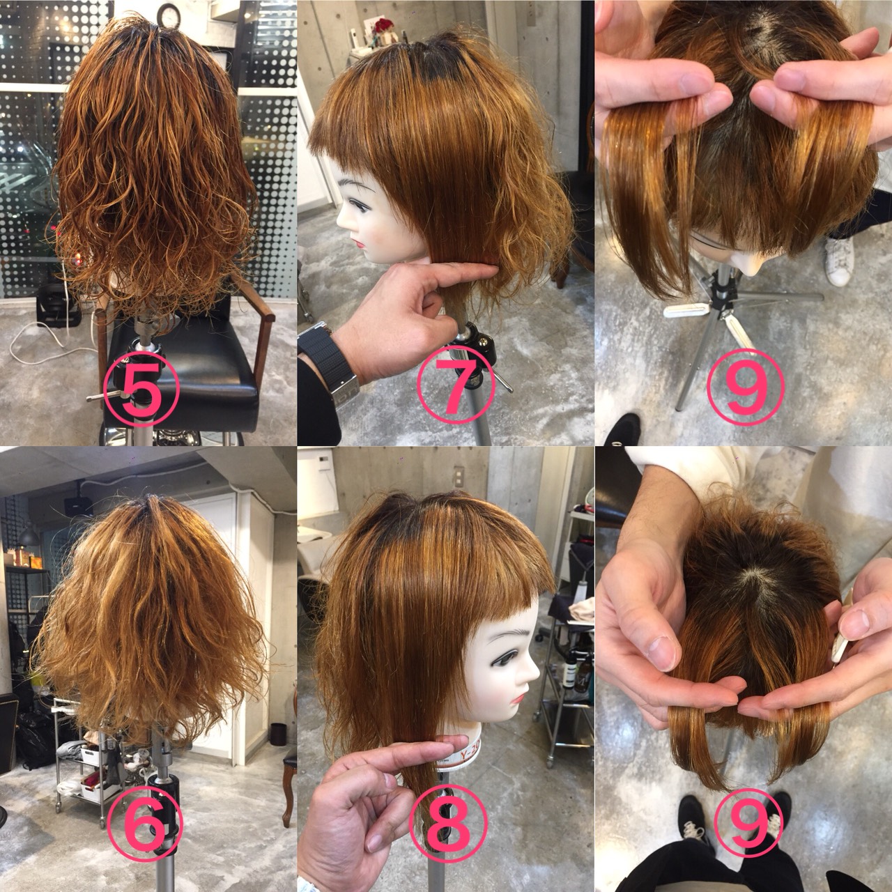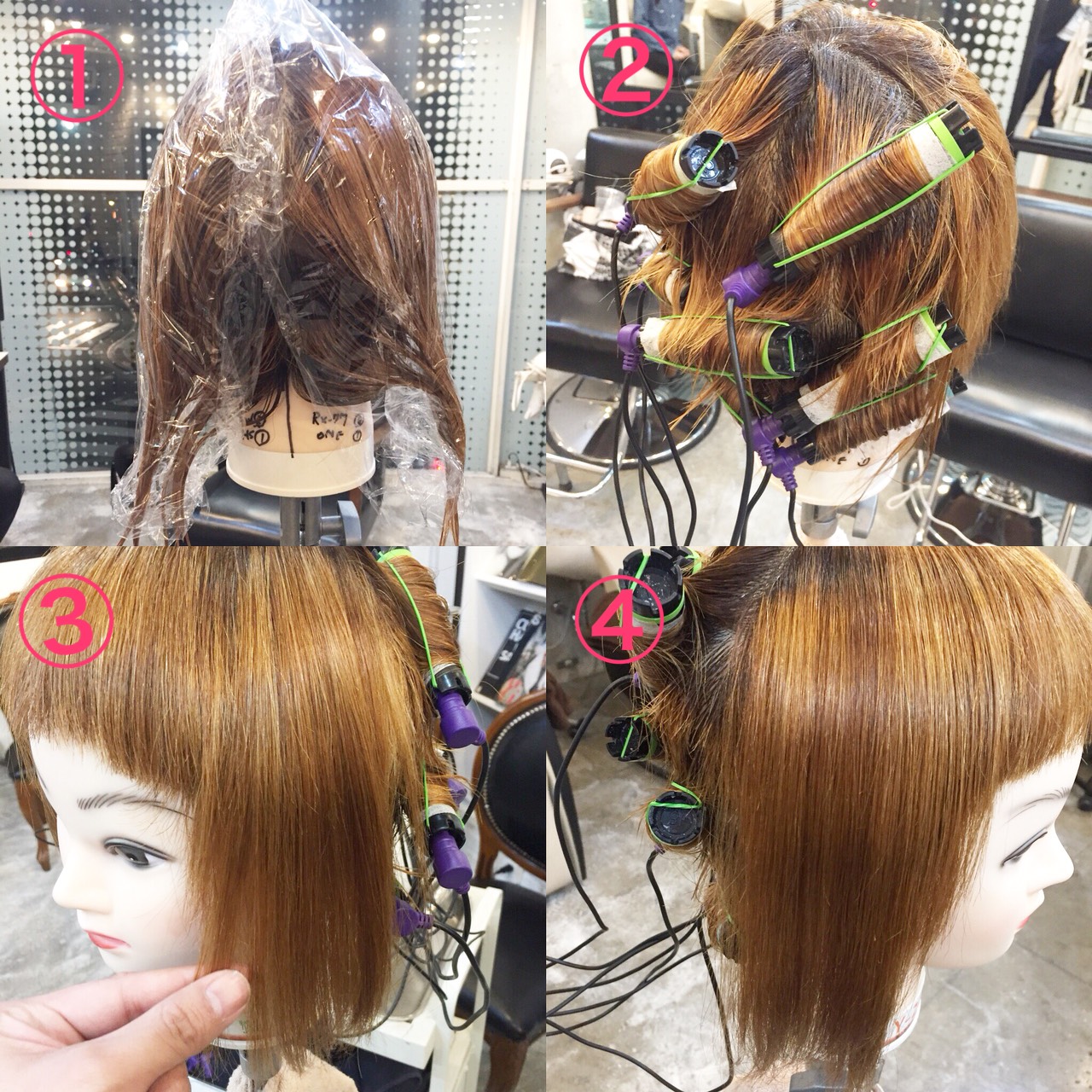 1. まずはブリーチされたウイッグで薬剤塗布。